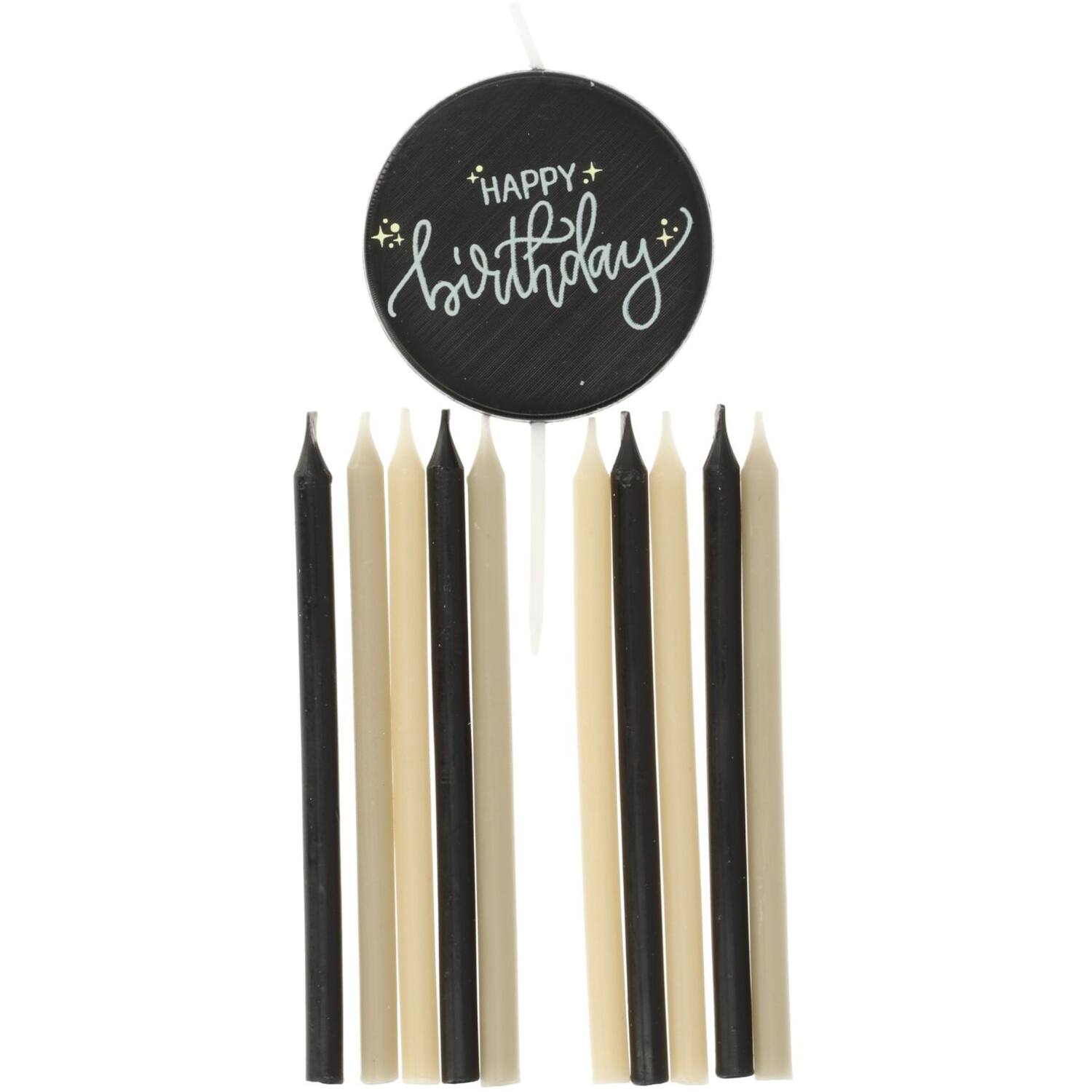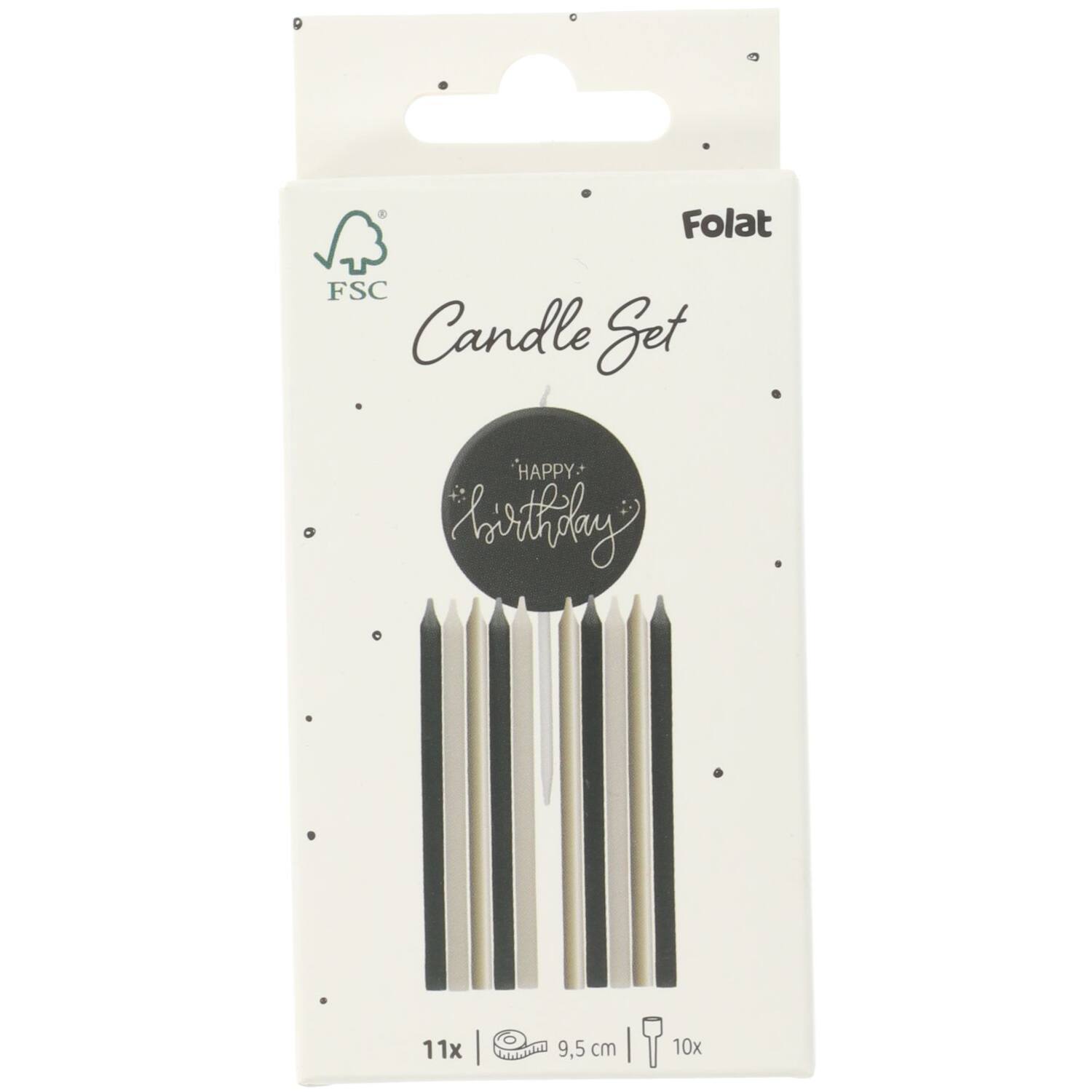 Das macht den Kuchen besonders lecker! 10 gerade Kerzen in Schwarz, Creme, Beige und 1 runde Kerze auf einem (Kunststoff-) Stab mit der Aufschrift „HAPPY Birthday“. Die Kerzen sind 9,5 cm hoch. Enthält 10 Halter. Für Geburtstage das ganze Jahr über geeignet. Diese Kerzen sind Teil der Crème Noire-Kollektion von Folat. Dieser Artikel besteht aus Wachs