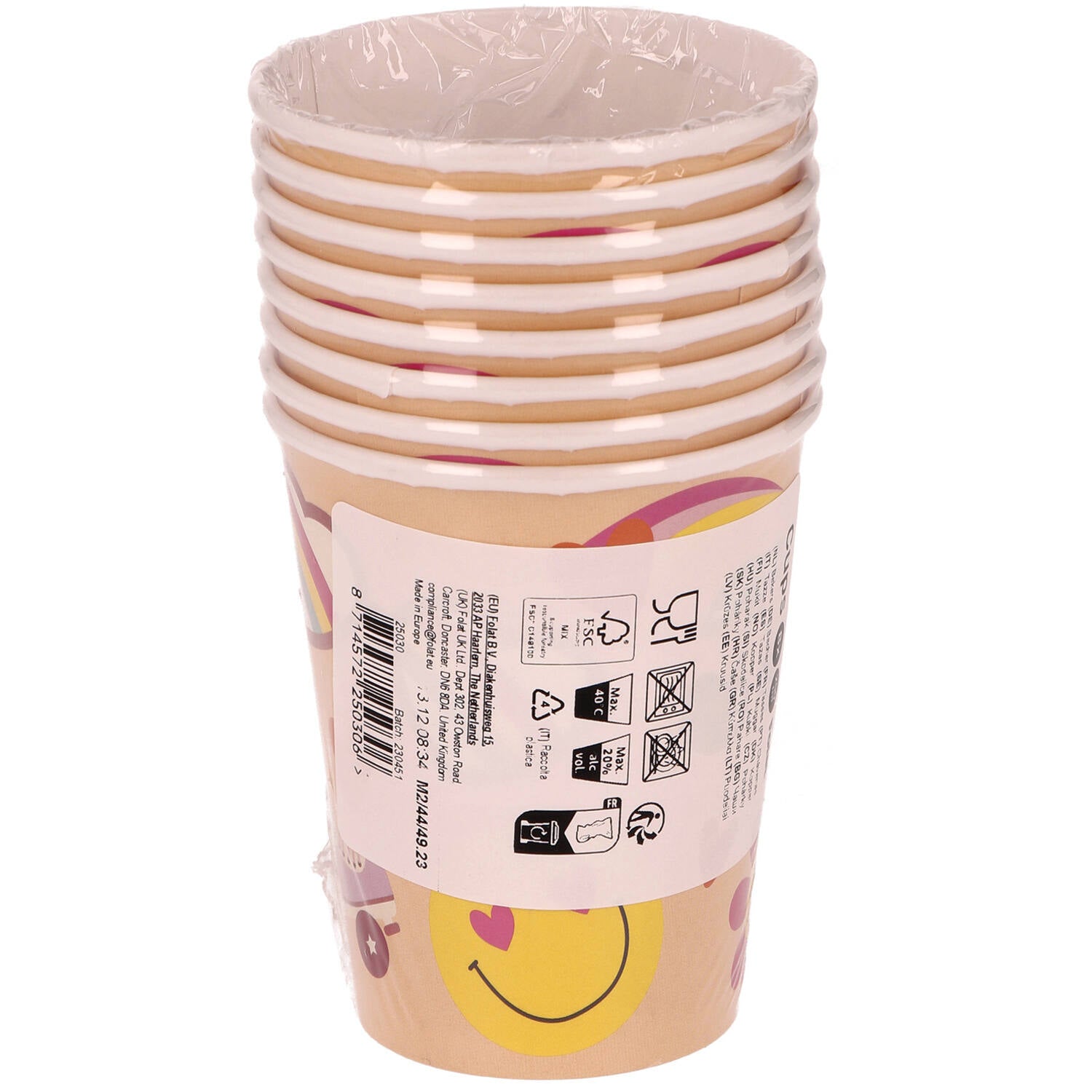 Trinkbecher aus Papier mit farbenfrohem Hippie-/Bohemien-/Flower-Power-Design. Für eine fröhliche Stimmung auf (Kinder-)Geburtstagen und anderen Anlässen. Diese Becher sind Teil der Boho Girlz-Kollektion von Folat. Dieser Artikel besteht aus FSC-Papier.